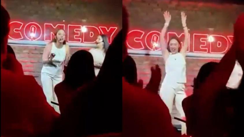 A las 20:30 de la noche del 2 de noviembre, la comediante subió a un escenario ante 160 personas junto a su amiga Moyita y dijo con ironía “estamos mejor que nunca, sin atados en la casa, la vida nos sonríe”.